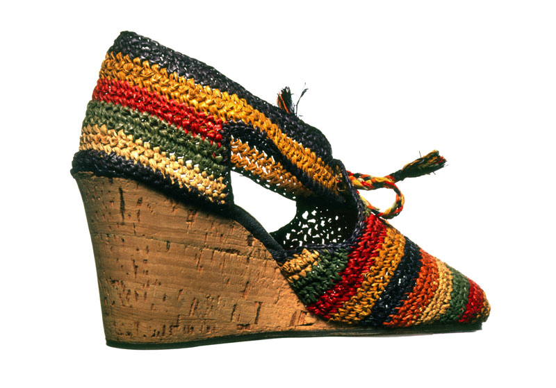 Sandal with crocheted raffia and cork wedge heel, 1942
