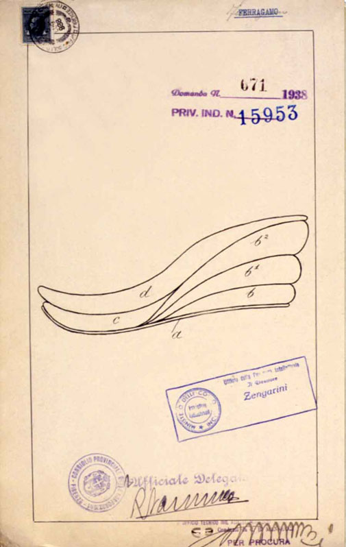 Salvatore Ferragamo, invention of the wedge heel and design patent, 1938