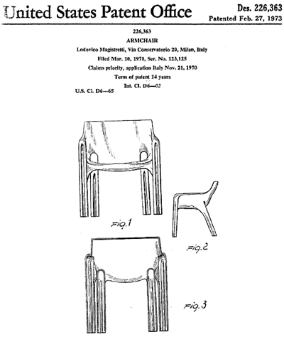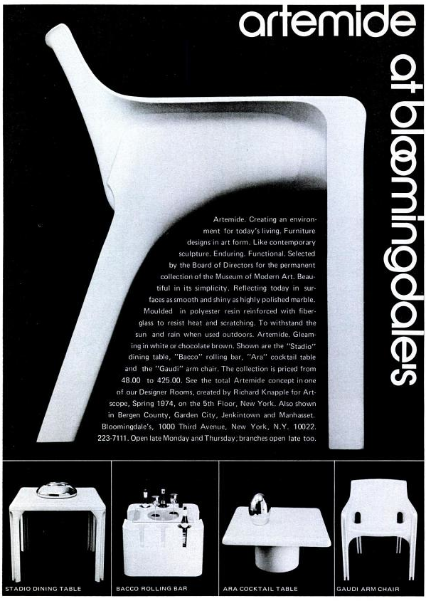 Bloomingdale’s ad in the NY Magazine issue, 1974. Design Patent, 1973.