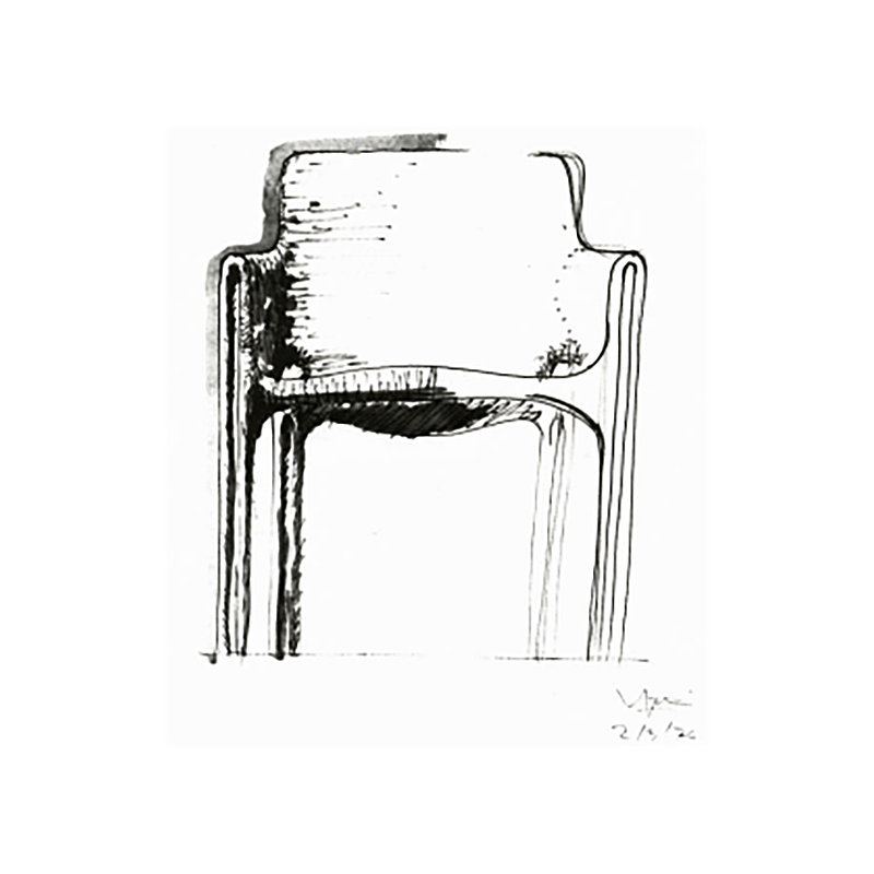 Vico Magistretti, sketch for the Gaudi chair, from the book “V.M. Elegance and Innovation in Italian design”.
