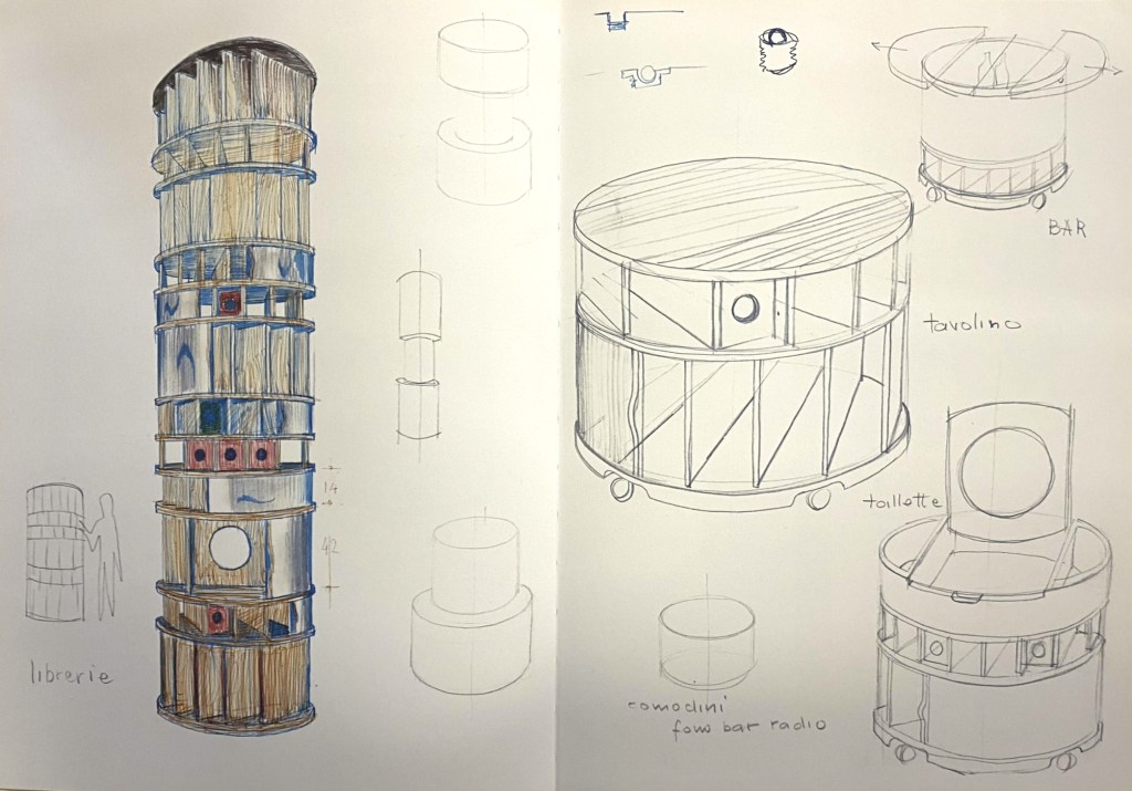 “The tower furniture has a dimension and a shape likely to be exploited for every home-use (…), it is a rollaway piece of furniture, a concentric container, whose use has to be planned, since it cannot contain everything, but should contain what is needed at hand, within range (…)” Vittorio Fagone and Ignazia Favata, 2011, Joe Colombo, Milano, 24 ORE Cultura, p.54), as it is defined by Joe Colombo himself.