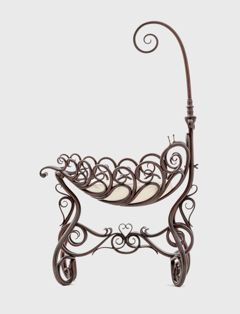 The company J. & J. Kohn (Jacob and Josef) from Vienna offered several designs of cradles made from bentwood; above is number 1571, one of the most extreme examples in Art Nouveau style.