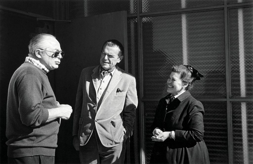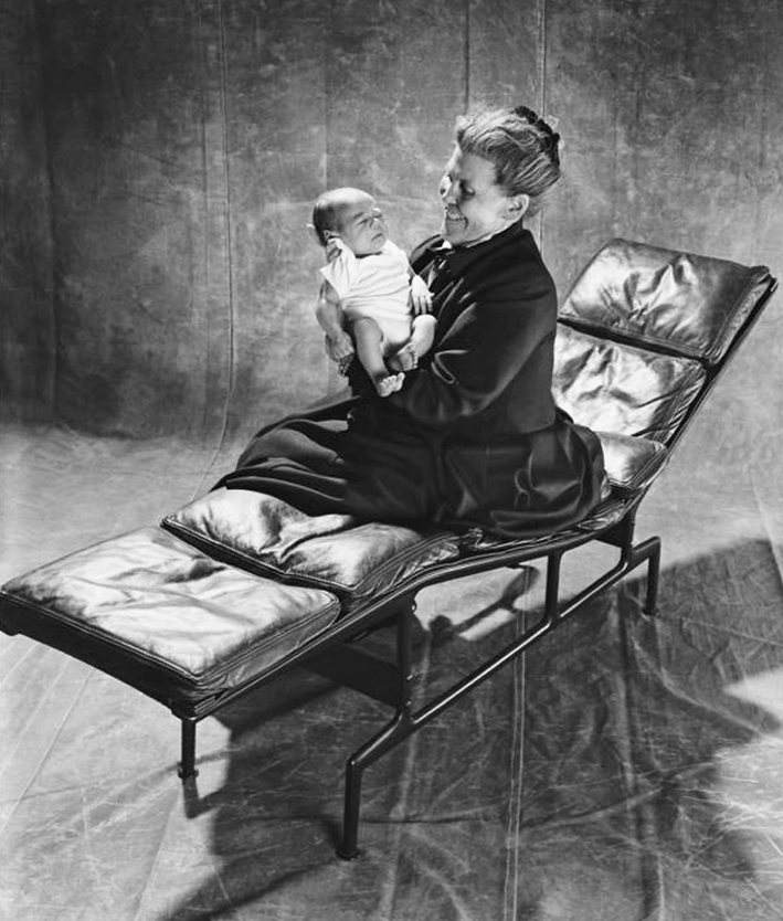 Between 1987 and 1997, Swiss photographer Christian Coigny produced a series of portraits of more than 130 cultural personalities seated on Vitra furniture, the foundation of a celebrated advertising campaign. Here you see Wilder on the Eames Lounge Chair and Ray Eames with her grandchild on the Wilder chaise longue.
